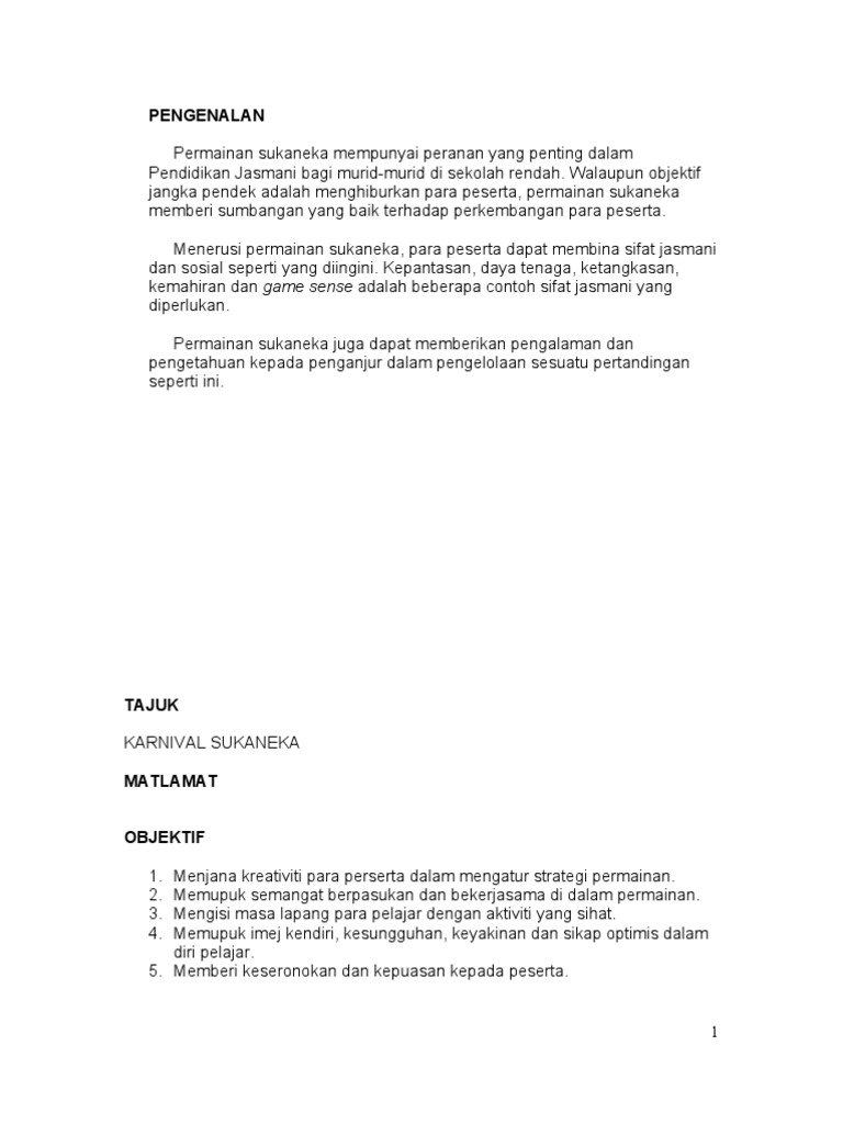 Kertas kerja sukaneka rakyat tempat. Up to 3 cash back KERTAS KERJA KARNIVAL SUKANEKA 1M1S SK TAMAN DESAMINIUM 2014. 800 pagi 100 petang.